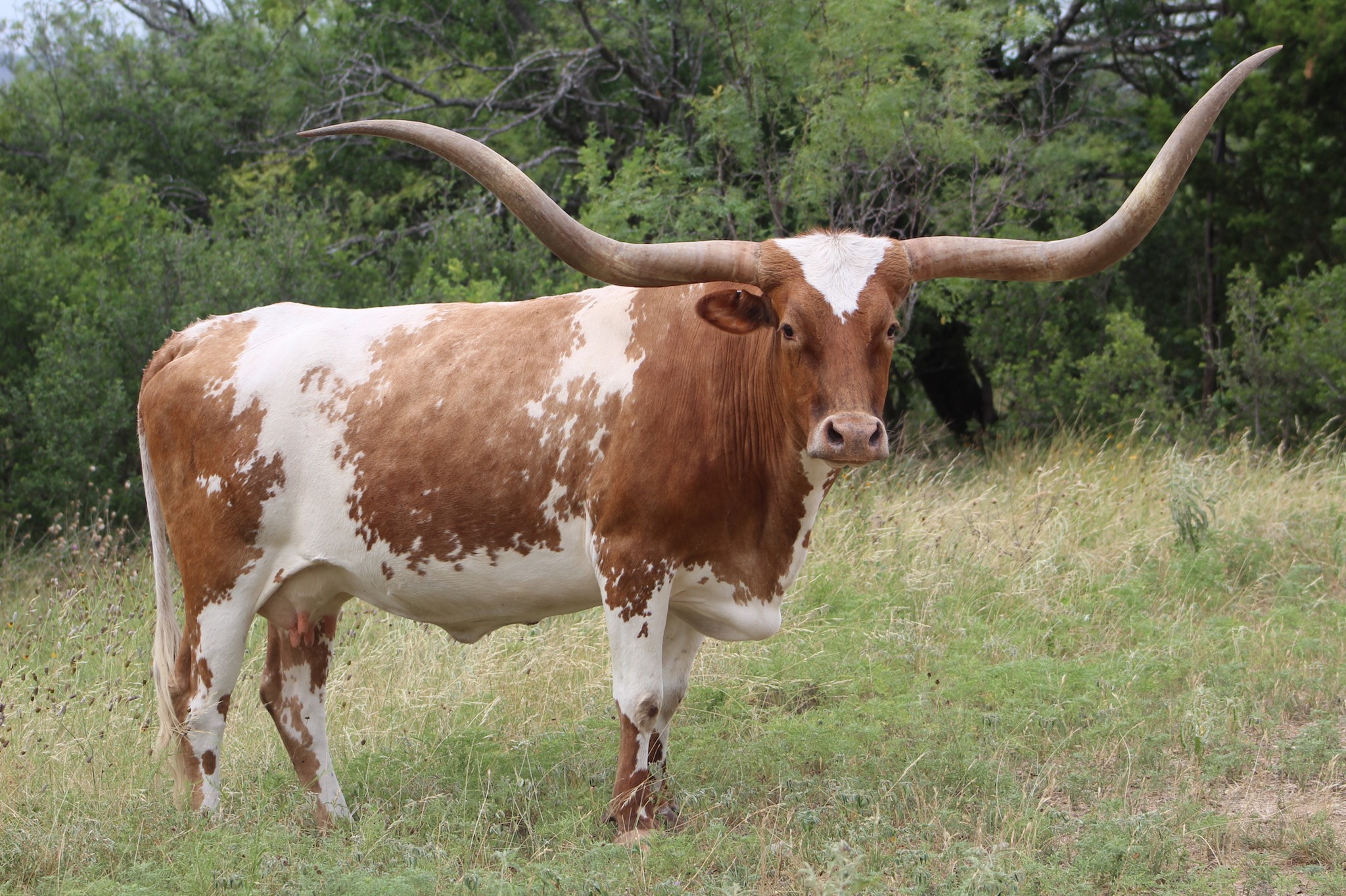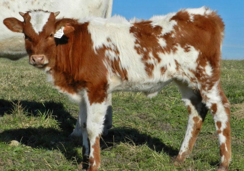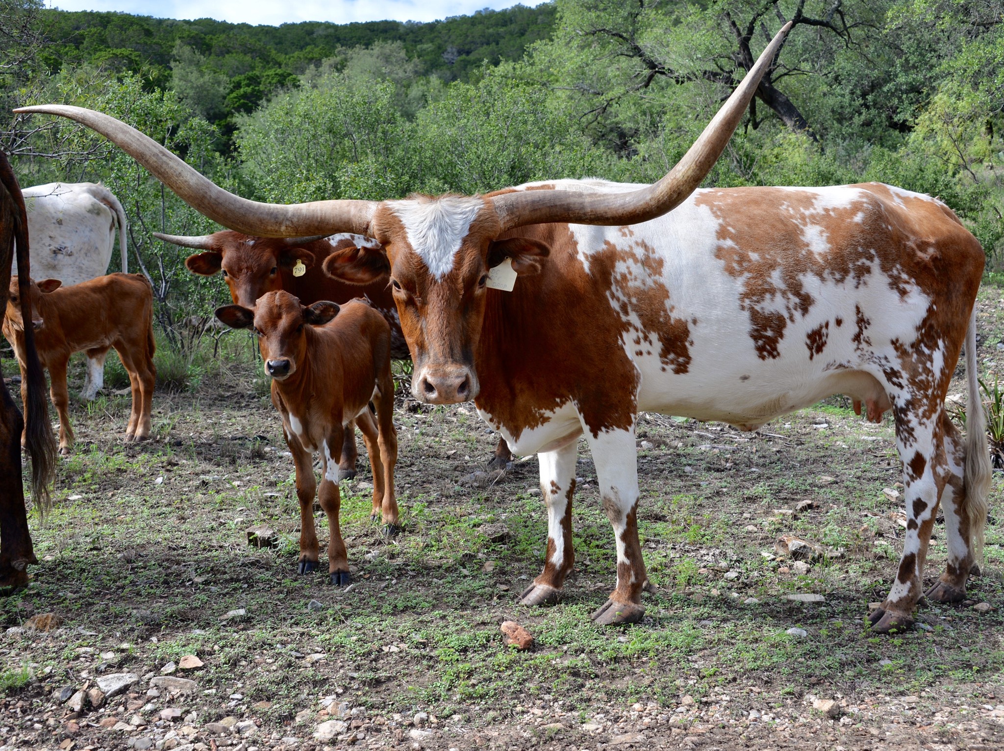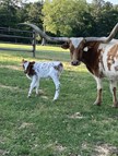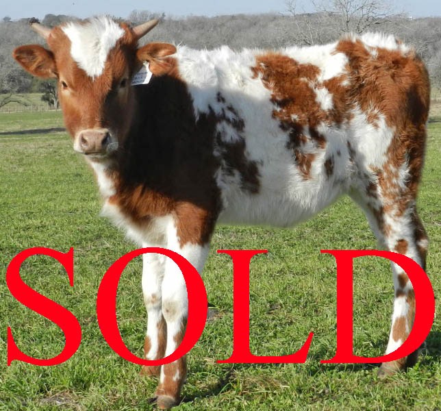Ace is a fabulous cow. She gave us three heifers in a row - two flashy Reckon So heifers and most recently a KDK Valiant heifer. Ace is a great mama and is growing nicely. She currently projects to 83" TTT with lots of total horn. Ace's dam, DC Pacific Snowdrop, measures 88" TTT and her sire, Helm's Ace, measures 86" TTT. Such powerhouse genetics!!